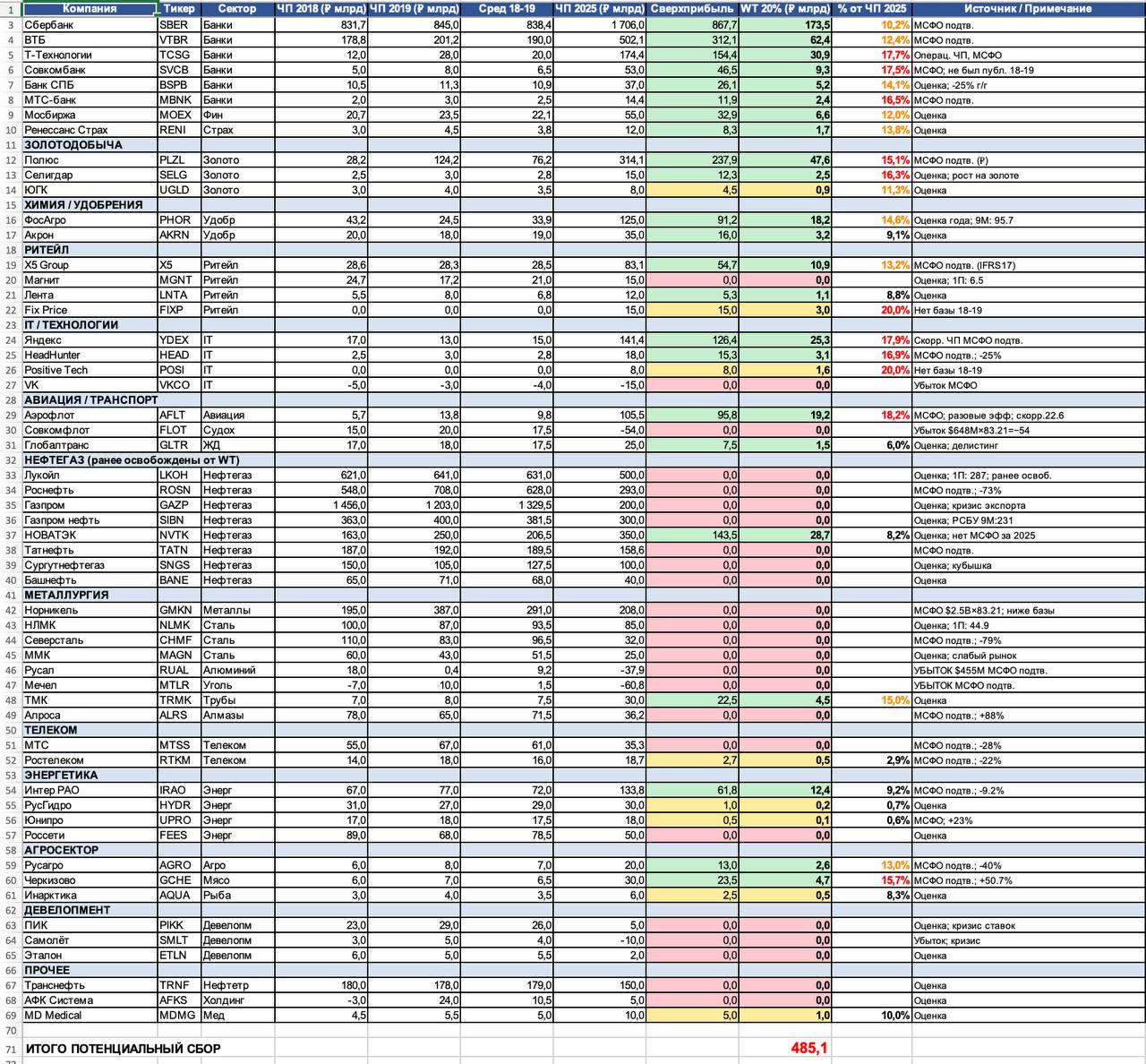 В худшем случае, со всех компаний возьмут ~500 млрд руб.