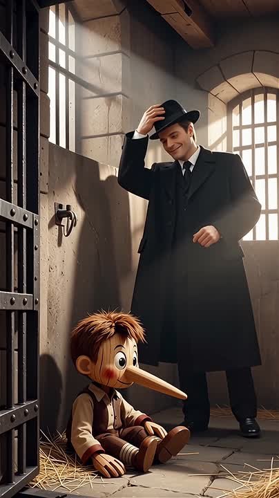 Буратино посадили в тюрьму. Захлопнулась за ним дверь камеры. И прокурор, снимая шляпу, сказал:
