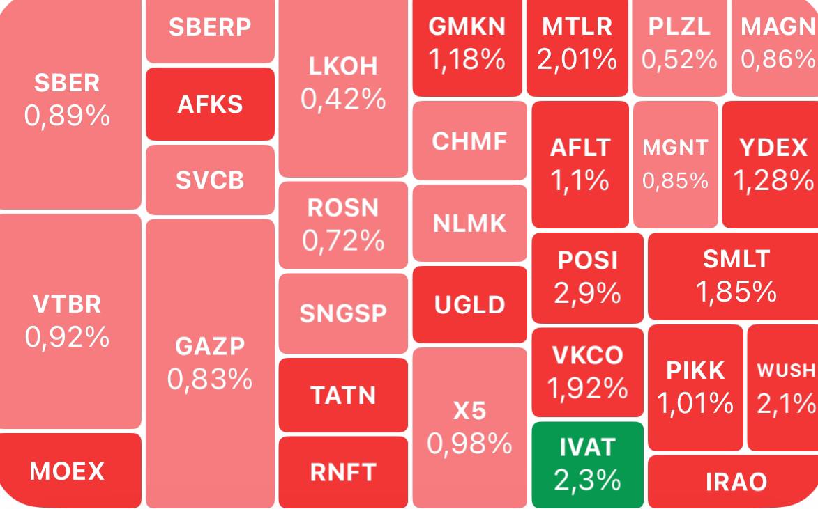 В пятницу индекс Мосбиржи упал на 1,4%: