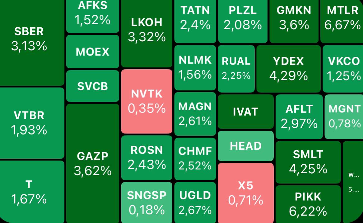 В пятницу индекс Мосбиржи вырос на 0,5%: