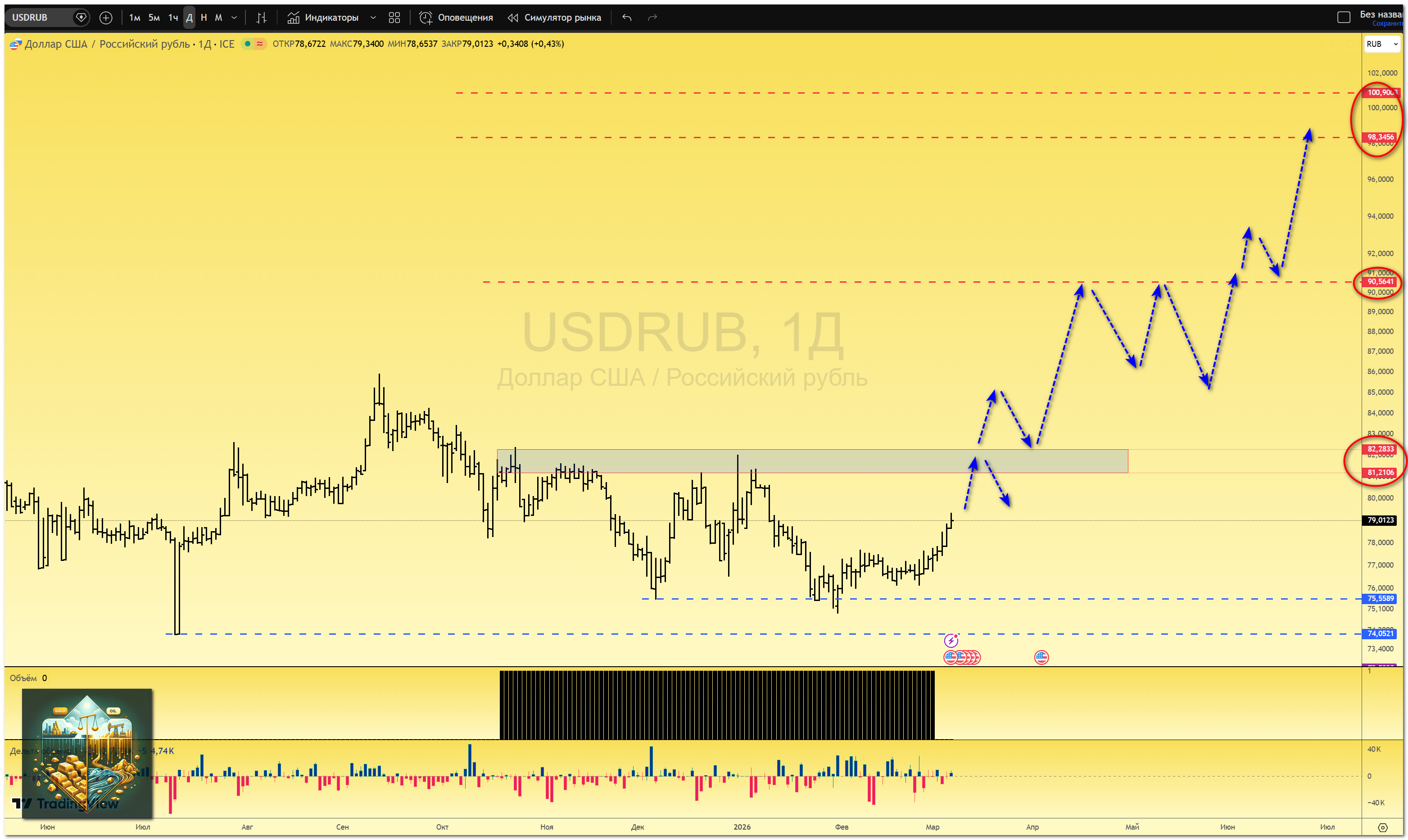 На сегодня отмечу поддержку в районе 78, не думаю, что ее пробьют сразу. Не думаю, что такой импульс сразу развернут, есть очень большая вероятность теста максимум. Наблюдаем.